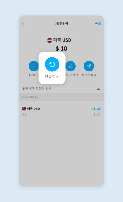 아래 순서에 따라 트래블월렛에 충전한 통화의 환불 방법을 알려드리겠습니다.